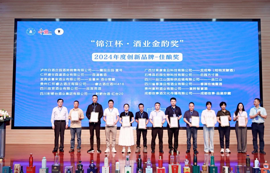 其中,中道華普設計集團、四川華宇瑞得科技獲“2024年度酒業(yè)卓越成就獎”;金六福·熊貓酒、白金酒(金壇)、大梁茗酒、湘山老酒、源窩子老酒獲評“2024年度影響力品牌”;杜甫文化酒、陽明悟道酒、故宮貢酒等六款產(chǎn)品獲評“2024年度文化名酒”;龍洄莊園、大梁酒莊、中國沈酒莊等15家酒莊獲評“2024年度唯美酒莊”;唐莊醬酒、金喜來·酒谷窖藏、大梁茗酒·茗媛等數(shù)十款產(chǎn)品分別獲評“2024年度創(chuàng)新品牌-杰釀獎/佳釀獎/善釀獎”。