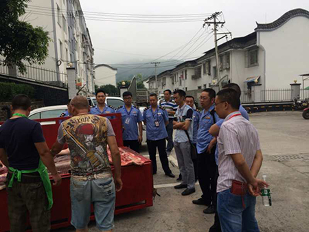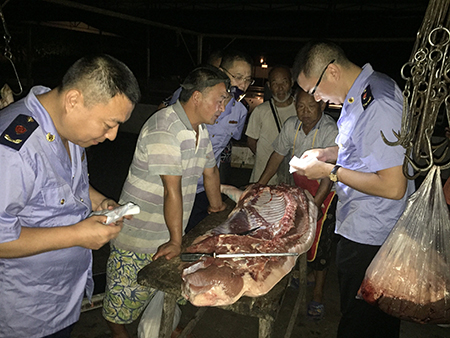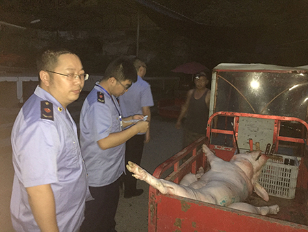 中國(guó)食品網(wǎng)訊 為加強(qiáng)生鮮豬肉市場(chǎng)監(jiān)管,切實(shí)維護(hù)生鮮豬肉市場(chǎng)消費(fèi)安全,金堂縣對(duì)生鮮豬肉市場(chǎng)展開專項(xiàng)整治行動(dòng)。6月29日凌晨,金堂縣市場(chǎng)和質(zhì)量監(jiān)管局會(huì)同縣農(nóng)林局、又新鎮(zhèn)政府、又新鎮(zhèn)派出所組成聯(lián)合整治小組,對(duì)又新鎮(zhèn)轄區(qū)內(nèi)豬肉市場(chǎng)開展專項(xiàng)督查工作。