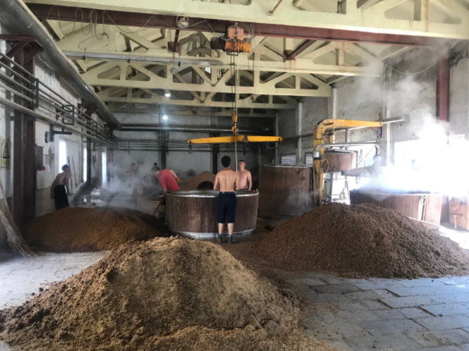業(yè)界流行一句話:千年老窖萬年糟,酒好須得窖池老。走進(jìn)今世緣酒業(yè)北廠區(qū),一排排灰色古樸的房子引人矚目,這兒有著明清時(shí)期典型的的活態(tài)存在的釀酒遺址。在手工班車間,赤著上身的師傅們正在忙碌著,幾乎還原了“粉碎驢推磨、出窖柳筐抬、蒸餾燒地鍋、晾醅木锨揚(yáng)”的釀酒場景。
