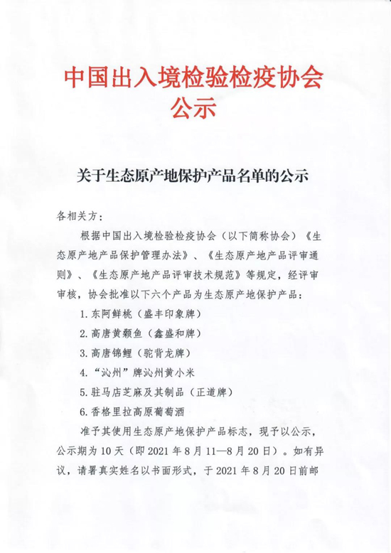 準(zhǔn)予其使用生態(tài)原產(chǎn)地保護(hù)產(chǎn)品標(biāo)志,現(xiàn)予以公示,公示期為10天(即2021年8月11—8月20日)。如有異議,請(qǐng)署真實(shí)姓名以書(shū)面形式,于2021年8月20日前郵寄或直接送達(dá)協(xié)會(huì)生態(tài)原產(chǎn)地產(chǎn)品保護(hù)工作辦公室(郵寄以寄出日期為準(zhǔn),直接送達(dá)以接收日期為準(zhǔn))。