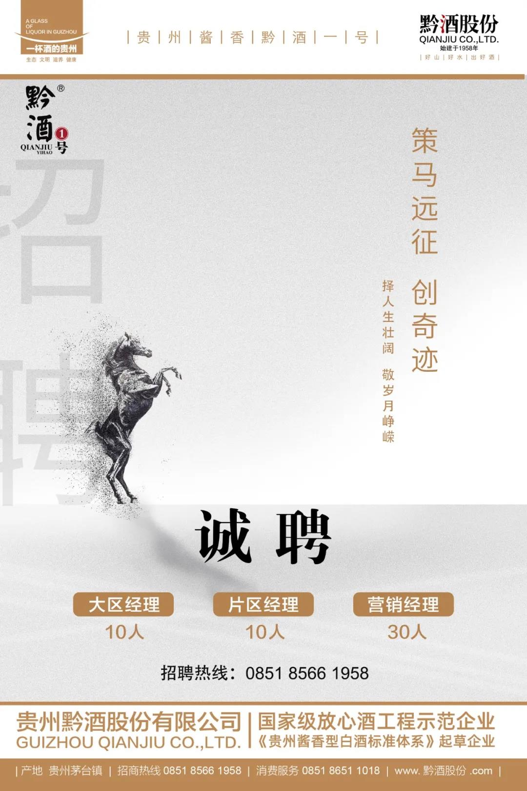 擇人生壯闊,敬歲月崢嶸。近日,貴州黔酒股份有限公司開啟2021年菁英薈,面向全國誠聘大區(qū)經(jīng)理10人,片區(qū)經(jīng)理10人,營銷經(jīng)理30人,邀請志同道合之人策馬遠征,勇創(chuàng)奇跡。