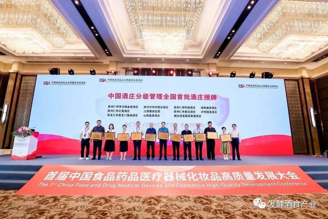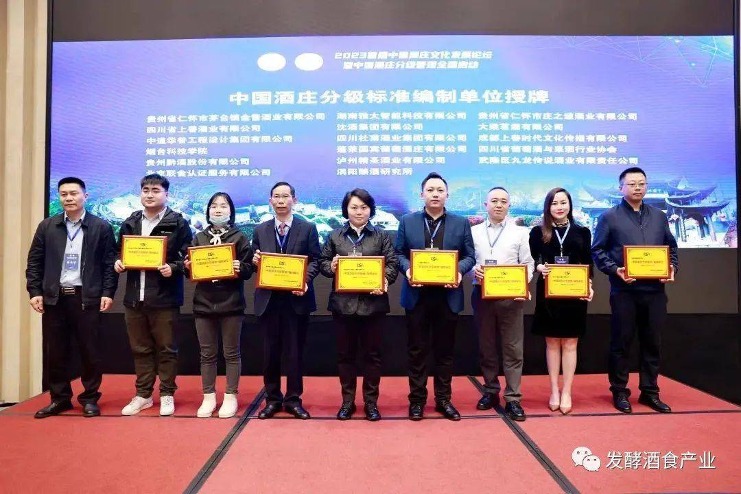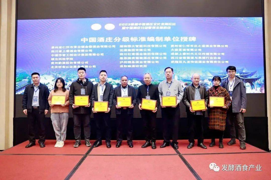 在現(xiàn)場舉行的“中國酒莊分級管理首批評定酒莊授牌儀式”上,四川瀘州中國沈酒莊、貴州仁懷黔國酒莊、湖南雁峰酒莊、貴州仁懷億度酒莊、貴州仁懷茅臺鎮(zhèn)金醬酒莊、江西婺酒莊園、貴州仁懷睿達(dá)酒莊、瀘州精圣酒莊、黑龍江農(nóng)墾龍門福地酒莊、山西龐泉酒莊、煙臺蓬萊國賓葡萄酒莊,首批酒莊榮獲中國酒莊分級管理評定的首批酒莊榮譽(yù)。