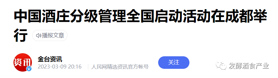 2023年3月7日,由中國食品藥品企業(yè)質(zhì)量安全促進(jìn)會指導(dǎo),中國食藥促進(jìn)會發(fā)酵食品專業(yè)委員會、中國酒業(yè)發(fā)展研究院、中國白酒學(xué)院,在四川成都聯(lián)合舉辦“首屆中國酒莊發(fā)展論壇暨中國酒莊分級管理全國啟動”活動。