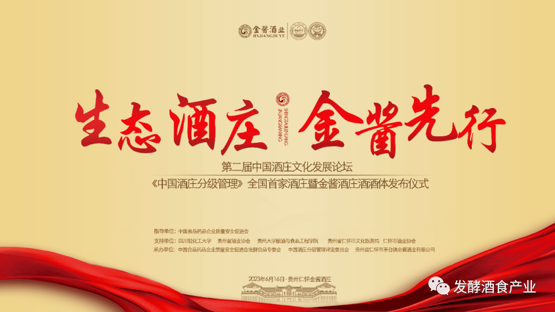 2023年6月16日,第二屆中國酒莊文化發(fā)展論壇《中國酒莊分級管理》暨金醬酒莊酒酒體發(fā)布儀式活動,在貴州仁懷茅臺鎮(zhèn)金醬酒莊舉行。論壇上,金醬酒莊被中國食品藥品企業(yè)質(zhì)量安全促進(jìn)會、中國酒莊分級管理評定委員會授予中國白酒酒莊(特級)榮譽(yù),這是實施《中國酒莊分級管理》開啟全國評定后的第一個中國酒莊,也標(biāo)志著中國酒莊發(fā)展開始走向嶄新里程。