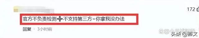 還有網(wǎng)友解讀:官方不負(fù)責(zé)檢測+不支持第三方=你拿我沒辦法。