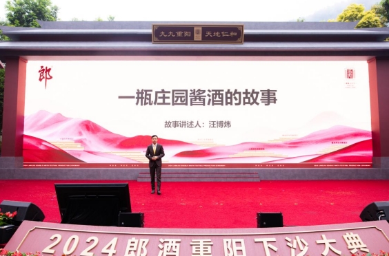 現(xiàn)場郎酒股份總經(jīng)理汪博煒化身成了一位故事講述人,娓娓道來一瓶莊園醬酒的故事。