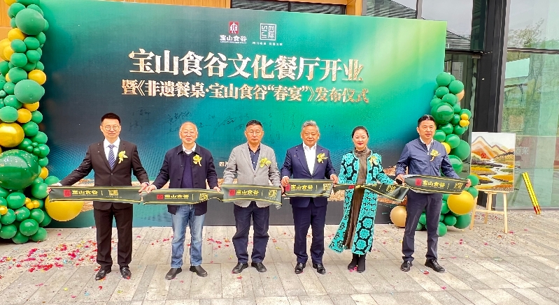 今天,我們相聚在成都天府藝術(shù)公園的寶山食谷,參加“寶山食谷”文化餐廳開業(yè)暨非遺餐桌“春宴”菜品發(fā)布儀式,共同開啟一場融合自然、藝術(shù)與健康的味覺盛宴,攜手邁步中國爽村的舌尖美學(xué)之旅,感謝大家的光臨支持!這里不僅是寶山村鄉(xiāng)村振興的“新客廳”,更是“中國爽村”文化魅力的縮影。