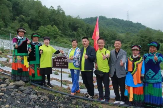 在人參果種植基地現(xiàn)場(chǎng),16支幫扶團(tuán)在種植基地參加了人參果選地塊立牌授旗儀式、甘洛縣特色產(chǎn)業(yè)招商引資推介會(huì)。
