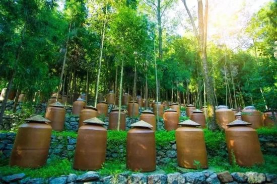 沿著青石小路拾級而上,層巒疊翠、山泉叮咚、鳥鳴清脆,數(shù)以萬計的盛滿美酒的陶壇靜靜地安睡于翠竹修林間,平實而驚艷;安坐于建于山中的開放式品酒室,細細品鑒滴滴醇香的源窩子老酒,愜意自在。