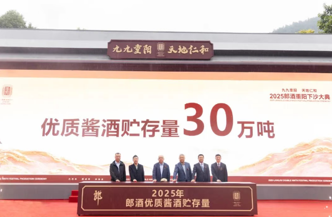 10月29日,重陽佳節(jié),「2025郎酒重陽下沙大典」在郎酒莊園吳家溝生態(tài)釀酒區(qū)天元廣場圓滿舉行。釀好酒,存新酒,賣老酒,百年郎酒正式進入30萬噸醬酒貯存量時代,品質底氣,數一數二。