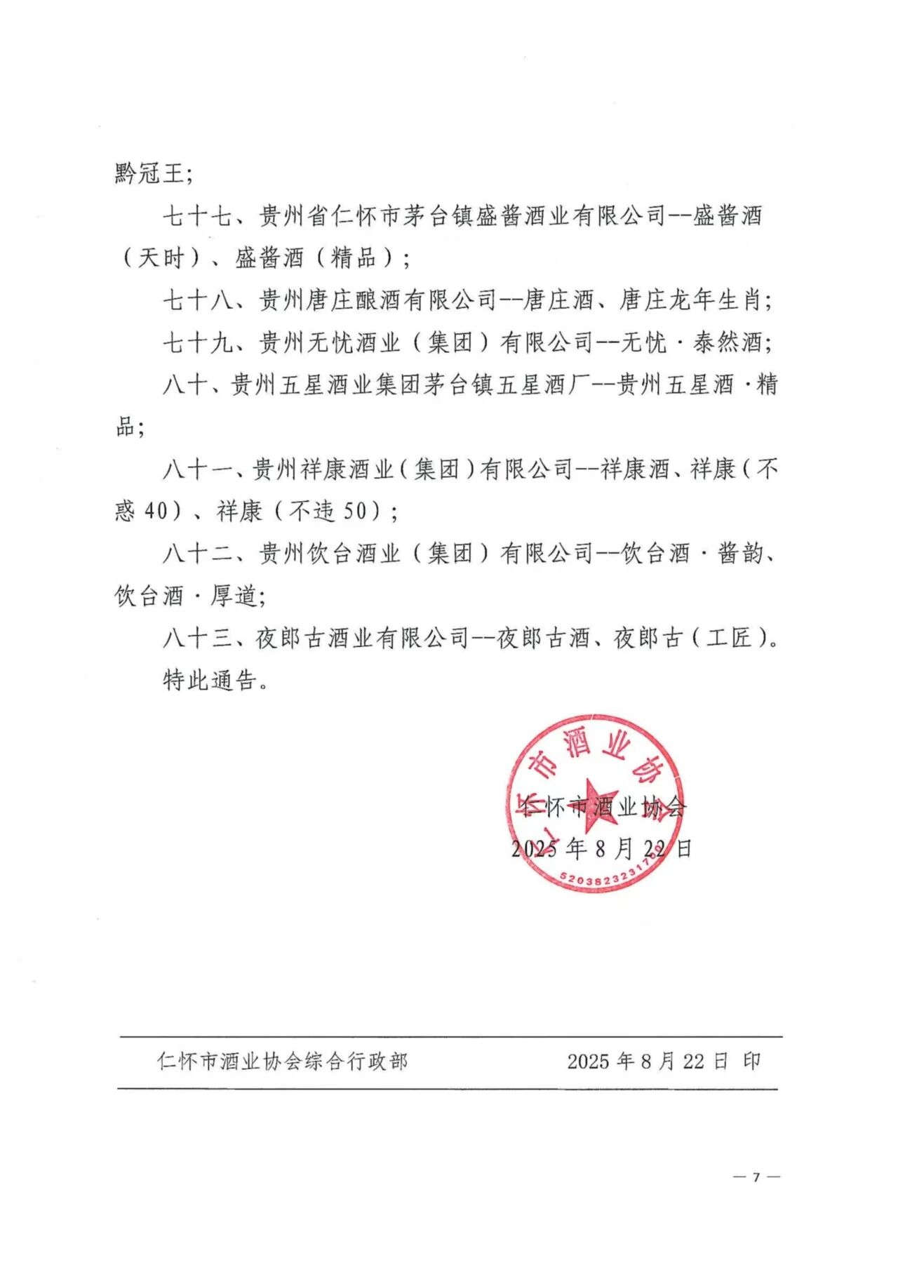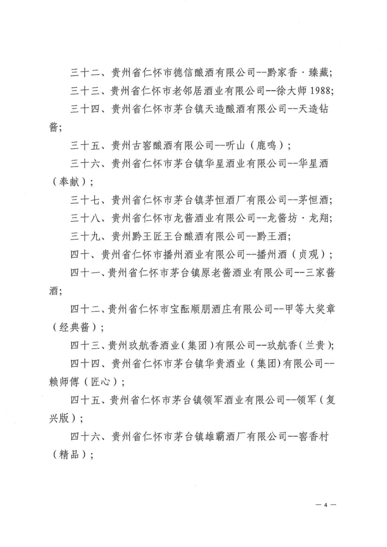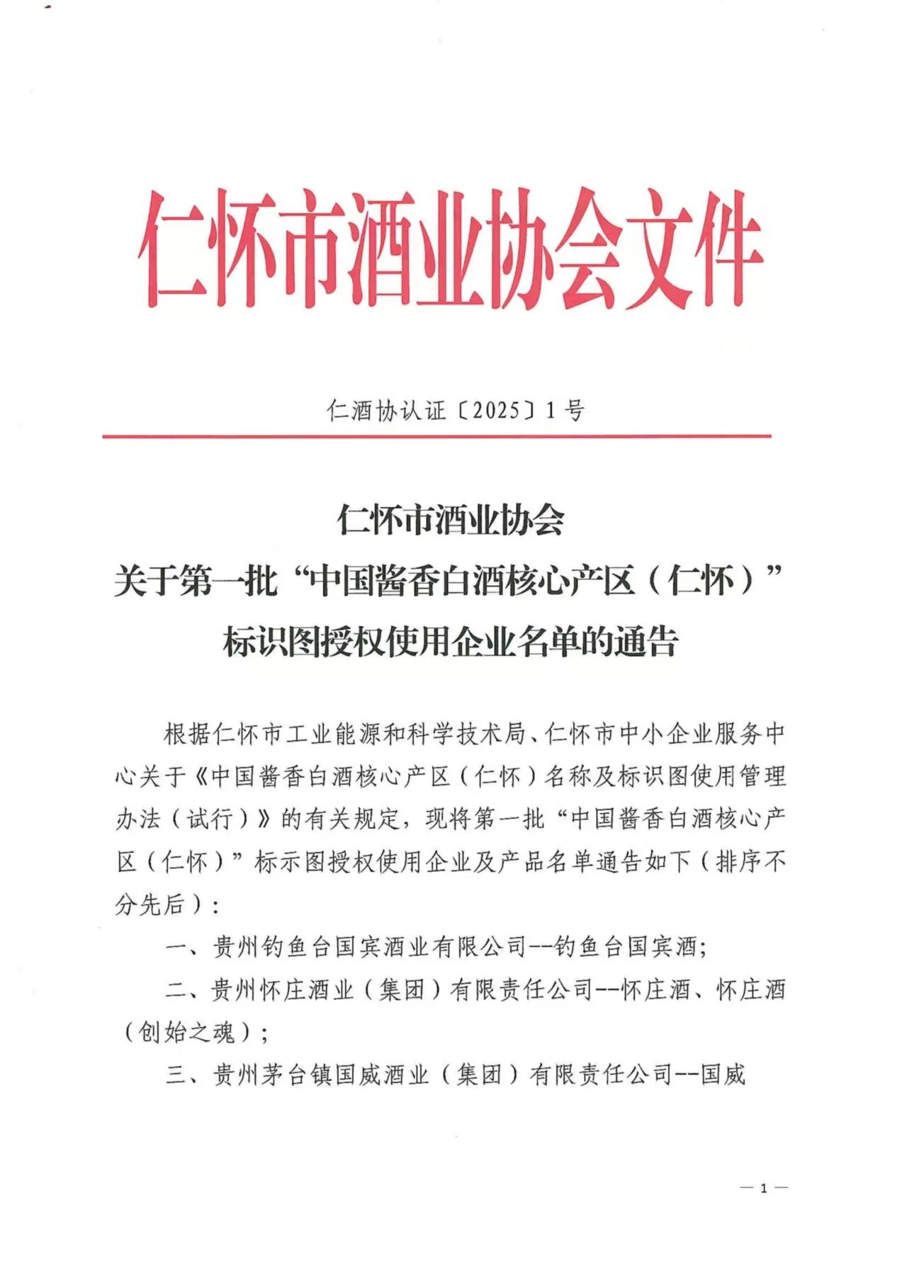 12月25日,據(jù)仁懷酒協(xié)消息,根據(jù)仁懷市工業(yè)能源和科學(xué)技術(shù)局、仁懷市中小企業(yè)服務(wù)中心關(guān)于《中國(guó)醬香白酒核心產(chǎn)區(qū)(仁懷)名稱(chēng)及標(biāo)識(shí)圖使用管理辦法(試行)》的有關(guān)規(guī)定,現(xiàn)公布第一批“中國(guó)醬香白酒核心產(chǎn)區(qū)(仁懷)”標(biāo)示圖授權(quán)使用企業(yè)及產(chǎn)品名單,共有貴州釣魚(yú)臺(tái)國(guó)賓酒業(yè)有限公司--釣魚(yú)臺(tái)國(guó)賓酒、貴州懷莊酒業(yè)(集團(tuán))有限責(zé)任公司--懷莊酒、懷莊酒(創(chuàng)始之魂)等83家企業(yè)在列(排序不分先后,該通告已于8月份書(shū)面印發(fā),此次應(yīng)讀者要求在官微公開(kāi)發(fā)布)。具體名單如下:
