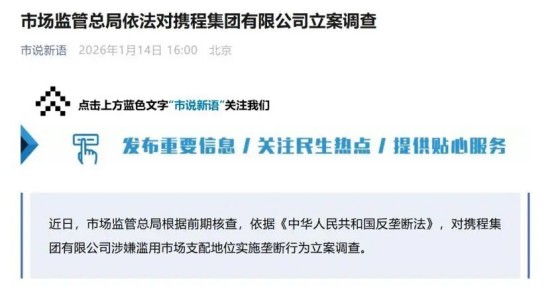 寬窄研究院據(jù)市場(chǎng)監(jiān)管總局官方網(wǎng)站消息,近日,市場(chǎng)監(jiān)管總局根據(jù)前期核查,依據(jù)《中華人民共和國(guó)反壟斷法》,對(duì)攜程集團(tuán)有限公司涉嫌濫用市場(chǎng)支配地位實(shí)施壟斷行為立案調(diào)查。